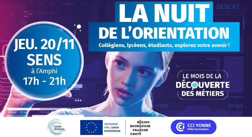 Participez à la Nuit de l’orientation à Sens, jeudi 20 novembre, de 17h à 21h à L’Amphi (90 rue Victor Guichard).